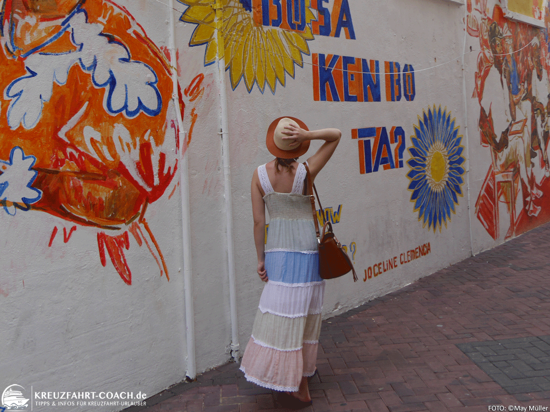 Wer abenteuerliche Landausflüge bucht, sollte die Informationen zu ggf. benötigter besonderer Kleidung gut lesen (z.B. Schnorchel, Surf-Schuhe, festes Schuhwerk…)! Außerdem wichtig: Über die Bord-Garderobe informieren! Je nach Reederei und je nach Restaurant, das man auf dem Schiff besuchen möchte, kann auch förmliche Kleidung erwünscht sein.