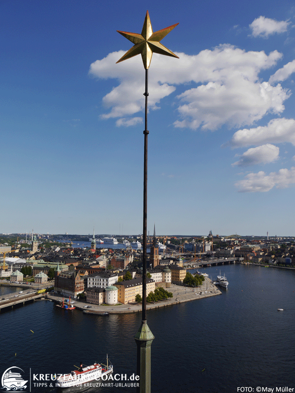 Eine gute Aussicht auf die Innenstadt inklusive Gamla Stan bekommt man vom 106m hohen Turm des Rathauses („Tornmuseet“). Dieses liegt direkt am Wasser und ist von einer breiten Terrasse umgeben, die sich für ein Päuschen in der Sonne eignet. Das Rathaus selbst kann auch im Rahmen einer Führung besichtigt werden. Vorsicht: Öffnungszeiten zur Turmbesteigung variieren nach Jahreszeit!